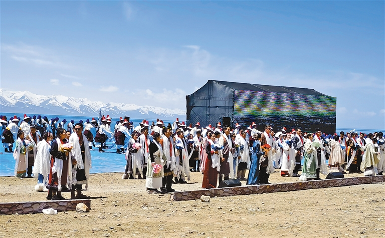 圖為99對(duì)新人在湖邊舉行藏式婚禮。
