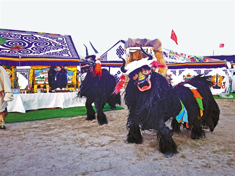 由300名演員將象征平安、吉祥的馬、牦牛、牛角、五彩哈達(dá)等元素融入表演全過(guò)程,藝術(shù)地展現(xiàn)獨(dú)有的開(kāi)湖祈福場(chǎng)景。