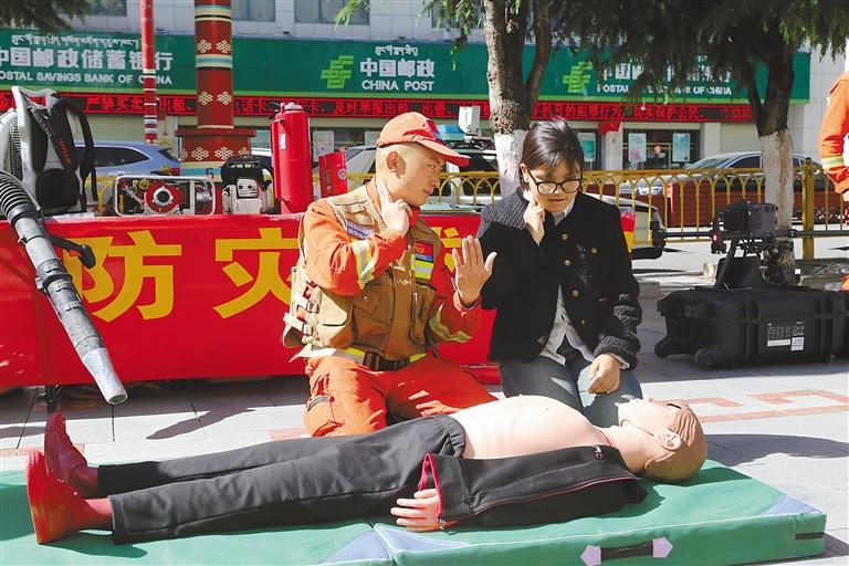 消防員科普應(yīng)急技能。記者 王雨霏 攝