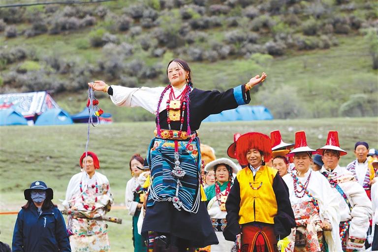 恰拉山以北的林周縣境內(nèi),處處是一片湖光山色交相輝映、風吹草低見牛羊的美景,熱振國家森林公園、旁多水庫、生態(tài)長廊阿堆溝等旅游景點集中在北部三鄉(xiāng)?!袄_紛四季·多彩林周”活動在林周縣唐古鄉(xiāng)藏雄村舉辦。從拉薩出發(fā),驅(qū)車170公里,翻越海拔5000多米的恰拉山。一路上,古柏環(huán)繞,云霧繚繞,漫山遍野的杜鵑花競相綻放,宛如進入了世外桃源。