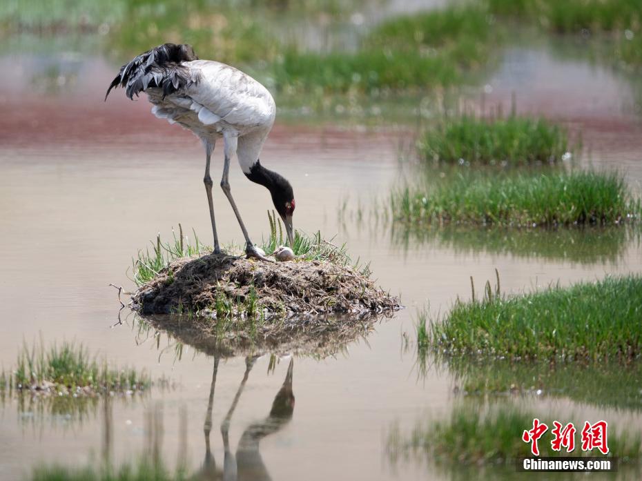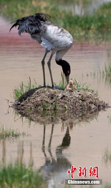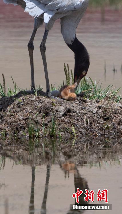 6月16日,在海拔4700米的西藏那曲市申扎縣,經(jīng)過34天的漫長孵化期,一對(duì)黑頸鶴夫婦終于等來了自己的小黑頸鶴成功破殼出生。值得一提的是,黑頸鶴寶寶的誕生日也是2024年的父親節(jié),黑頸鶴父親在節(jié)日當(dāng)天喜獲最珍貴的禮物。據(jù)悉,黑頸鶴每窩通常產(chǎn)卵1-2枚,孵化期通常要33到35天。中新社記者 貢嘎來松 攝