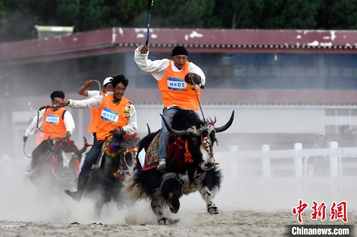 6月23日,拉薩首屆農(nóng)牧民運動會上的賽牦牛比賽。李林 攝