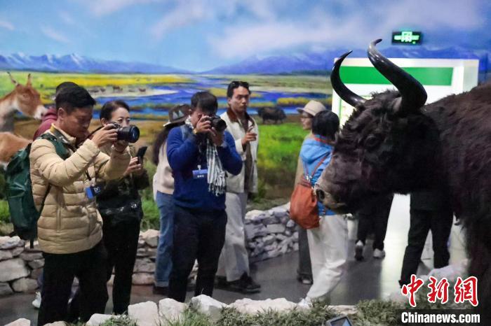 圖為此次活動(dòng)受邀嘉賓在玉樹州博物館內(nèi)拍攝牦牛標(biāo)本。薛蒂 攝