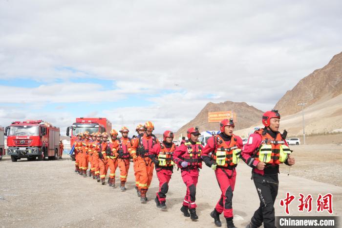 圖為西藏阿里消防支隊(duì)地質(zhì)災(zāi)害應(yīng)急救援演練現(xiàn)場。土旦穆朗 攝