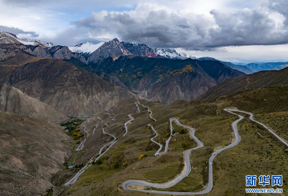 10月13日拍攝的川藏公路“怒江72拐”(無人機照片)。該處位于昌都市八宿縣境內(nèi),是318國道川藏線上一段艱險與美景并存的山路。新華網(wǎng) 旦增努布 攝