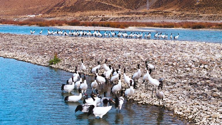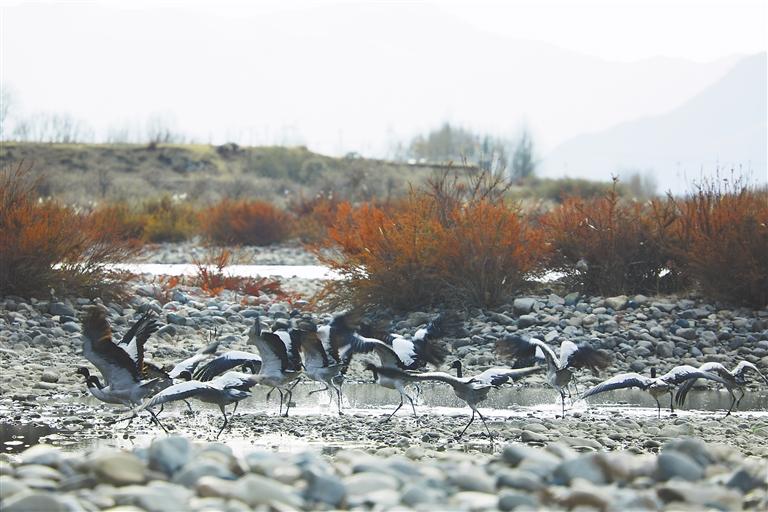 如今,一批又一批黑頸鶴從四川、青海等地啟程,歷經(jīng)近千公里的長(zhǎng)途跋涉,紛紛抵達(dá)西藏各越冬地,開(kāi)啟他們的越冬生活。