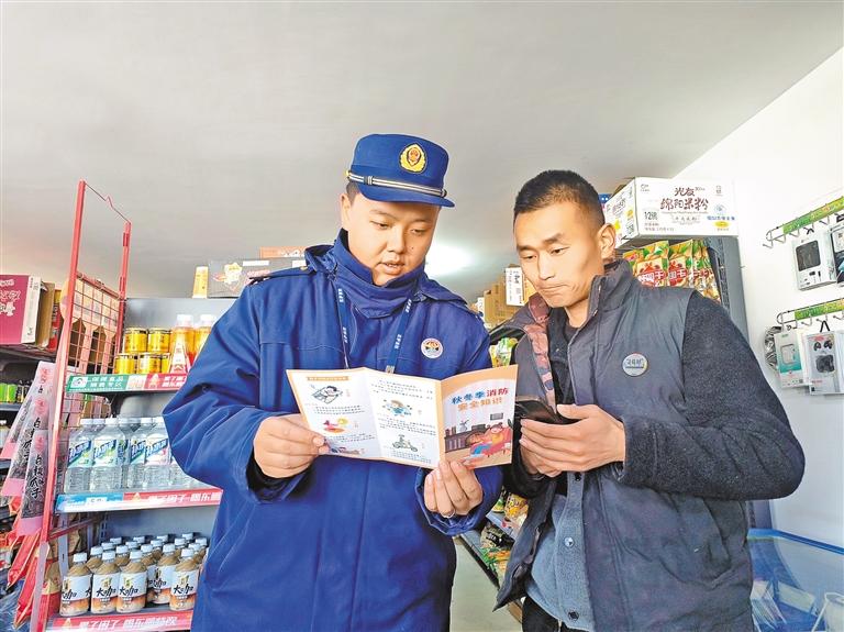 拉薩市消防救援支隊(duì)宣傳員對(duì)臨街商鋪經(jīng)營人員講解消防安全常識(shí)。