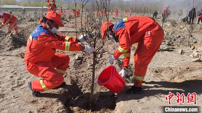 圖為日喀則市森林消防大隊(duì)義務(wù)植樹(shù)活動(dòng)現(xiàn)場(chǎng)。洛桑頓珠 攝