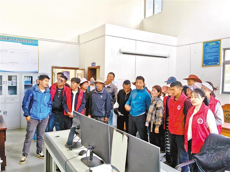圖為加查縣洛林鄉(xiāng)布姆村黨員在縣污水處理廠參觀學習。記者 巴桑旺姆 攝