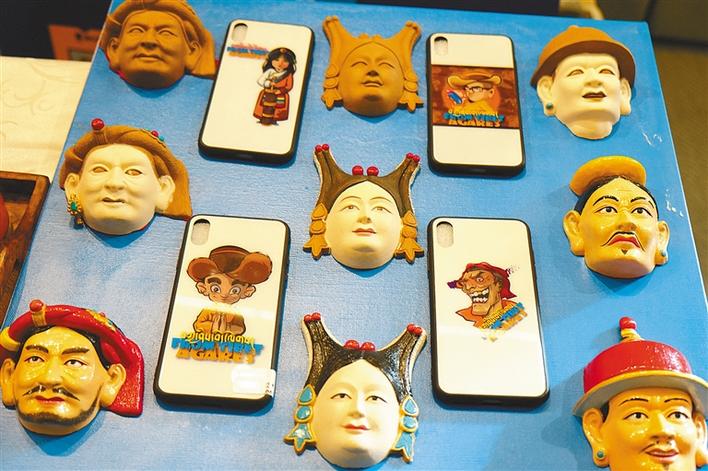 圖為吉祥彩幔研發(fā)的民俗面具和文創(chuàng)手機殼。