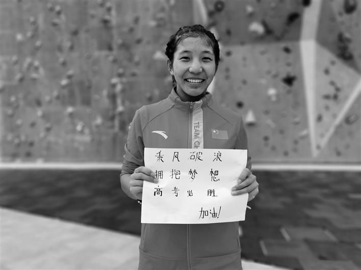 “乘風(fēng)破浪,擁抱夢想,高考必勝?!蔽鞑鼗╆牭年爢T們也送來了祝福。