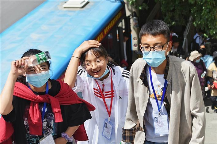 7月9日,西藏拉薩阿里河北完全中學(xué)高三學(xué)生考完民族語(yǔ)言文字藏語(yǔ)文考試后,圓滿告捷該校迎戰(zhàn)的首個(gè)高考。圖為高考考生走出考點(diǎn)。 中新社記者 貢桑拉姆 攝