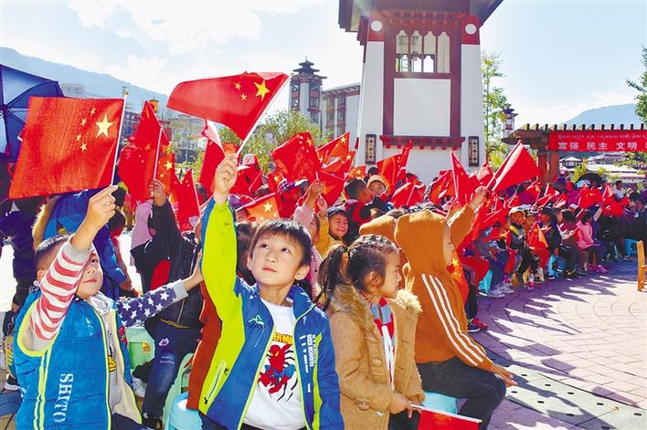 墨脫縣舉辦的文體活動(dòng)中,小朋友手持小國(guó)旗,表達(dá)愛(ài)國(guó)情。記者 孫文娟 通訊員 李龍勇 攝