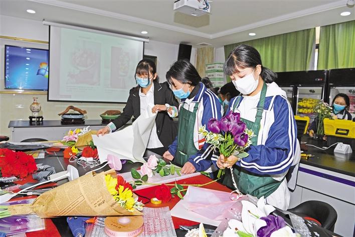 拉薩市第一中等職業(yè)技術(shù)學(xué)校學(xué)生正在學(xué)習(xí)插花技藝。記者 唐斌 攝