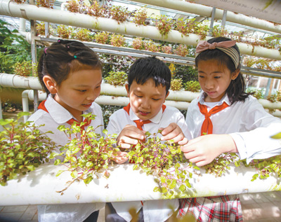 近日,江蘇省海安市城南實驗小學(xué)組織學(xué)生走進現(xiàn)代農(nóng)業(yè)園,近距離感受先進農(nóng)業(yè)栽培技術(shù),豐富學(xué)生課外生活。翟慧勇攝