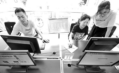 湖北襄陽高新區(qū)東風社區(qū)電子閱覽室為居民提供免費線上閱讀服務。新華社發(fā)