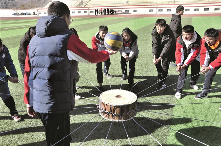上午10時,課間操時間,拉薩北京中學全體學生集中在學校操場,在西藏塔嘎布體育發(fā)展公司教練的帶領(lǐng)下,該校兩個班級50多名學生興高采烈地參與到拓展運動中,一起進行“花開花落”“擊鼓顛球”“動力繩”等7個項目的拓展運動訓練。同學們通過共同合作完成指定運動,在歡笑聲中一起進行趣味運動。拉薩北京中學相關(guān)負責人表示,此次趣味體育拓展活動不僅有利于促進學生的心理素質(zhì),還能增強學生之間的團隊意識,希望同學們積極參與、發(fā)揚體育精神。