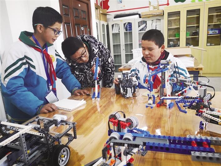 拉薩二中學(xué)生正在觀摩成型的機(jī)器人。記者 張雪芳 攝