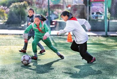 格日么色格參加學(xué)校的系統(tǒng)訓(xùn)練已有兩個月,雖然球感和跑位還較弱,但也在不斷進(jìn)步。如今她每天放學(xué)后都會再到球場加練半個小時,晚上回家做完作業(yè)也會在壩子里顛一個多小時的球?!艾F(xiàn)在我不僅能射門,帶球也好了很多。”格日么色格表示,自己是真心喜歡足球?!疤咦闱虿粌H能讓我感到快樂,還讓我看到希望——長大后,我想出去看更廣闊的世界?!?/p>