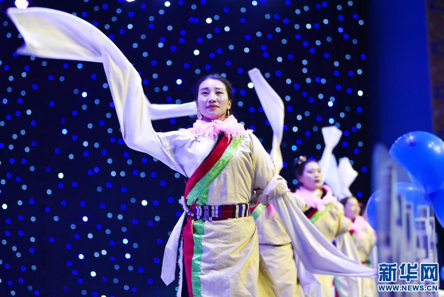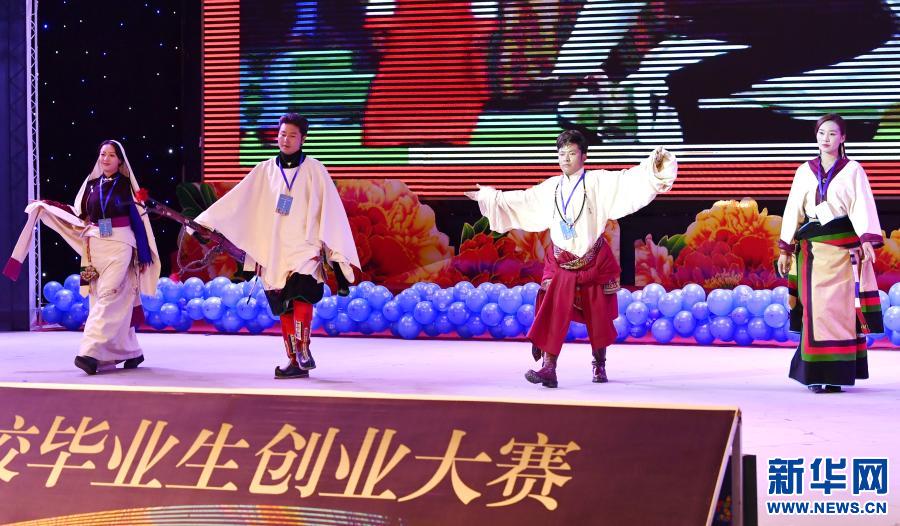 演員在西藏那曲第二屆高校畢業(yè)生創(chuàng)業(yè)大賽決賽現(xiàn)場表演(11月30日攝)。新華社記者 張汝鋒 攝
