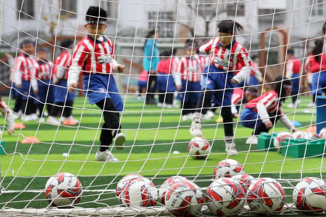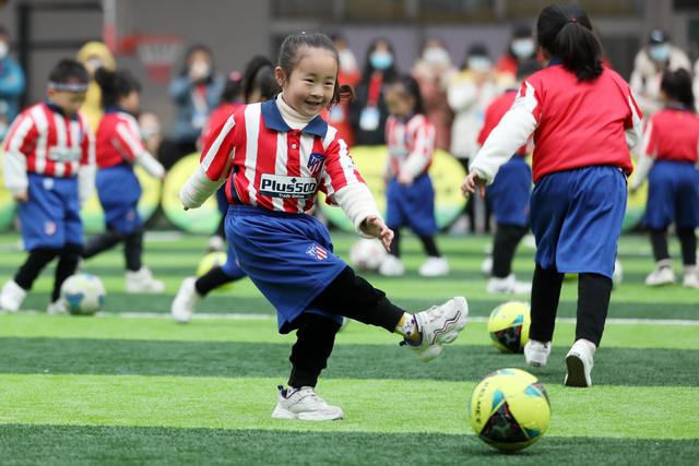 12月7日,淮北市第二實驗幼兒園的小朋友在足球課上學(xué)習(xí)踢足球。安徽省淮北市第二實驗幼兒園是一所“全國足球特色幼兒園”。該園把足球列入幼兒園體育課教學(xué)內(nèi)容,通過開設(shè)幼兒足球趣味練習(xí)、足球游戲等特色課程,向孩子們傳授足球基本知識和技巧,從小培養(yǎng)孩子們對足球的興趣,讓他們感受足球運動的魅力,健康快樂成長。新華社發(fā)(萬善朝 攝)