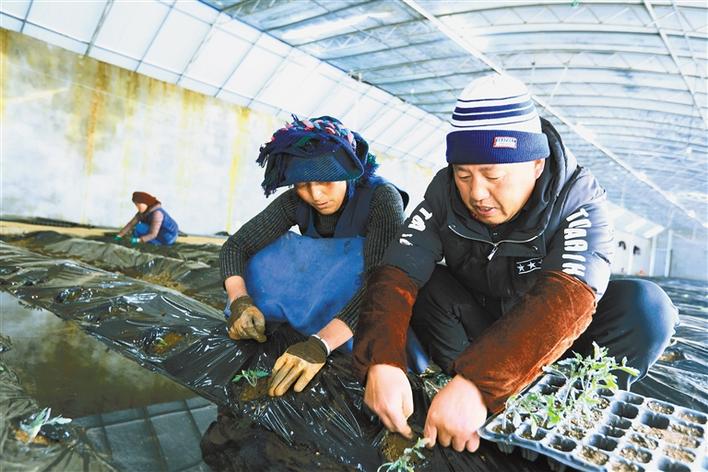 圖為園區(qū)技術(shù)人員(右)對(duì)種植戶進(jìn)行技術(shù)指導(dǎo)。唐斌 洛桑 攝