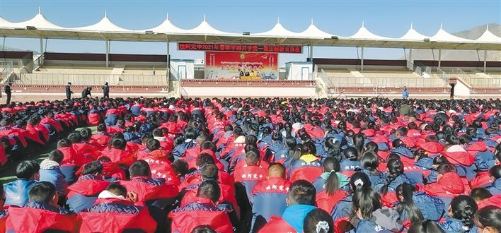 伴著初春的腳步,迎著和煦的春風,3月8日上午的大課間,拉薩阿里河北完全中學全校師生在校運動場舉行了2021年春季開學典禮。