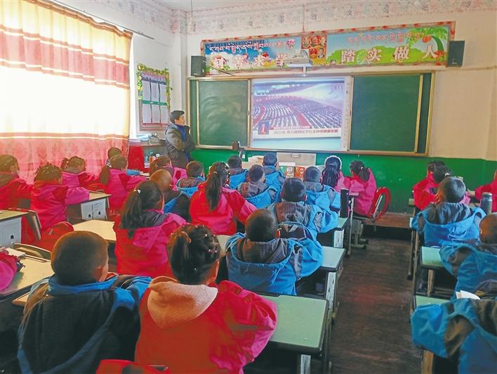 圖為昌都市洛隆縣馬利鎮(zhèn)第二小學師生在收看全國兩會盛況。圖片由昌都市洛隆縣馬利鎮(zhèn)第二小學提供