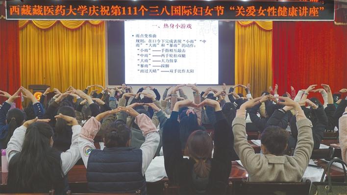 圖為西藏藏醫(yī)藥大學的女性教職工參加“關愛女性健康講座”活動現(xiàn)場。