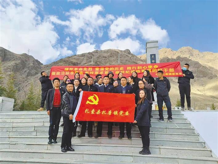 圖為活動結(jié)束后全體黨員干部在革命烈士紀(jì)念碑前合影留念。次仁片多 索朗瓊珠 攝