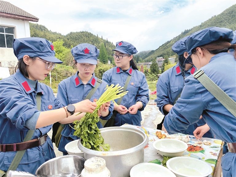 自制紅軍餐是拉薩市參訓(xùn)學(xué)員進行革命傳統(tǒng)教育的內(nèi)容之一。紅軍餐中的每一道菜都有特殊的意義,學(xué)員們利用準(zhǔn)備好的食材、廚具、柴火等,完成了生火、洗菜、切菜、炒菜等紅軍餐制作全流程。一道道簡樸卻不失美味的紅軍菜肴,讓大家深深感受到了井岡山革命時期生活條件的艱苦。