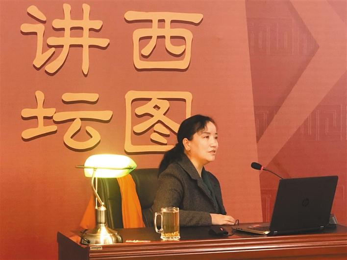 圖為明吉措姆在“西圖講壇”講座。記者 曉勇 攝