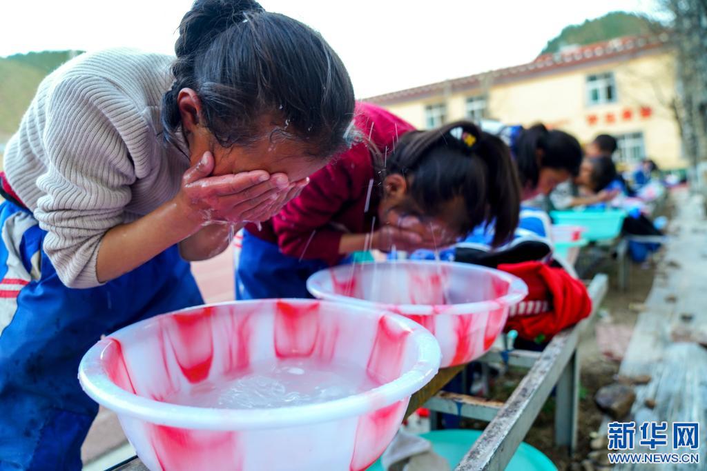 4月30日,在西藏昌都市類烏齊縣桑多鎮(zhèn)第二小學,學生們用熱水洗漱。這套熱水設(shè)施由李純民發(fā)起的“齊興”助學獎勵基金捐助。新華社記者 黃臻 攝