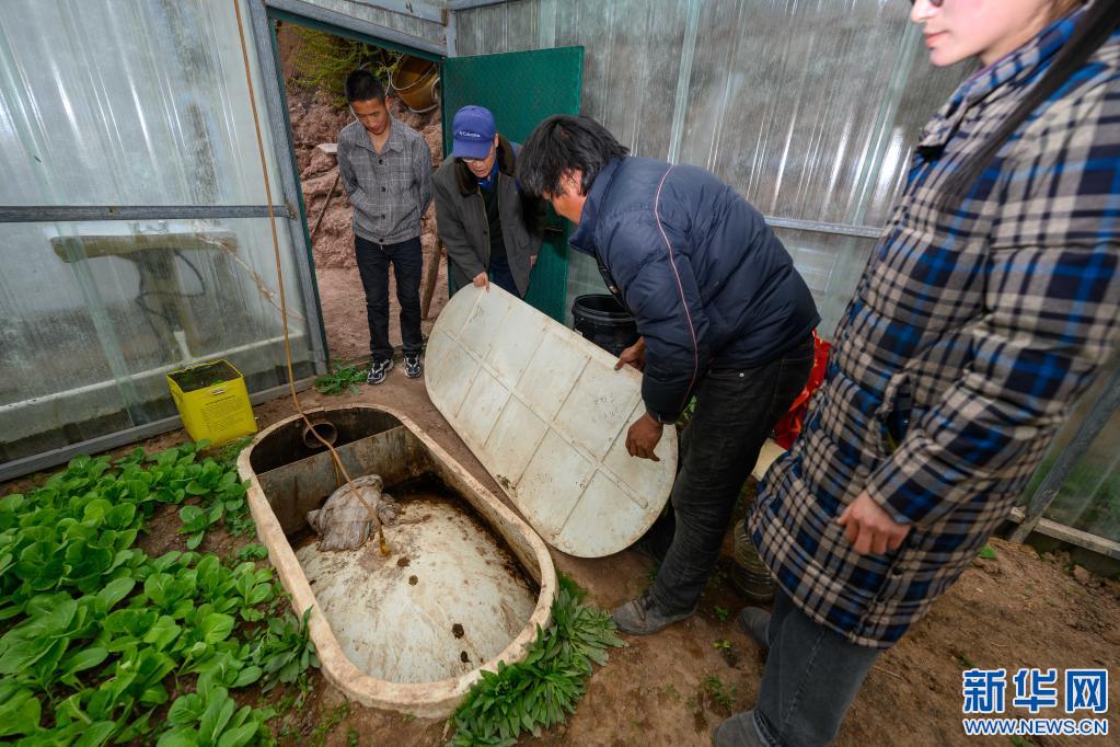 5月2日,在西藏昌都市類烏齊縣濱達鄉(xiāng)濱達村,李純民(左二)在當?shù)卮迕裣虬桶偷牵ㄓ叶┘抑胁榭凑託夤薜氖褂们闆r。新華社記者 劉金海 攝