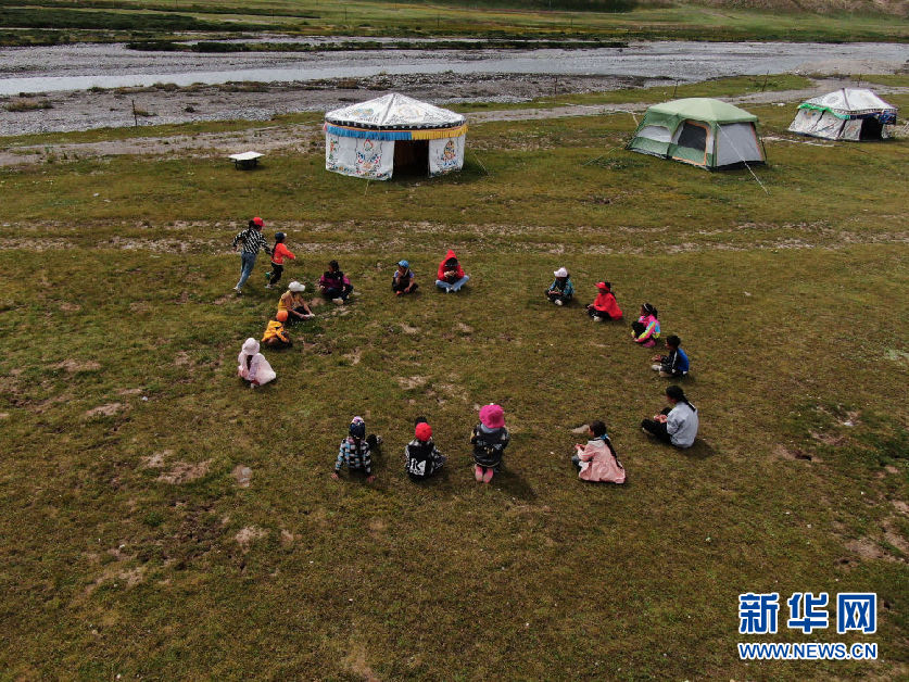 牧民轉(zhuǎn)場(chǎng)到夏季草場(chǎng)之后,居住分散,放假的孩子們往往無人看管。為解決這個(gè)問題,瑪沁縣從2018年起開辦“育苗加油站”,聘請(qǐng)暑假回鄉(xiāng)的大學(xué)生,組織青少年開展形式多樣、內(nèi)容豐富的活動(dòng)。