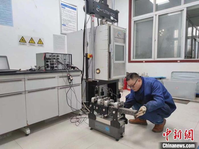 黃恒偉與團(tuán)隊為莫喀高鐵項目進(jìn)行四點(diǎn)彎曲疲勞試驗(yàn)?!∈茉L者供圖