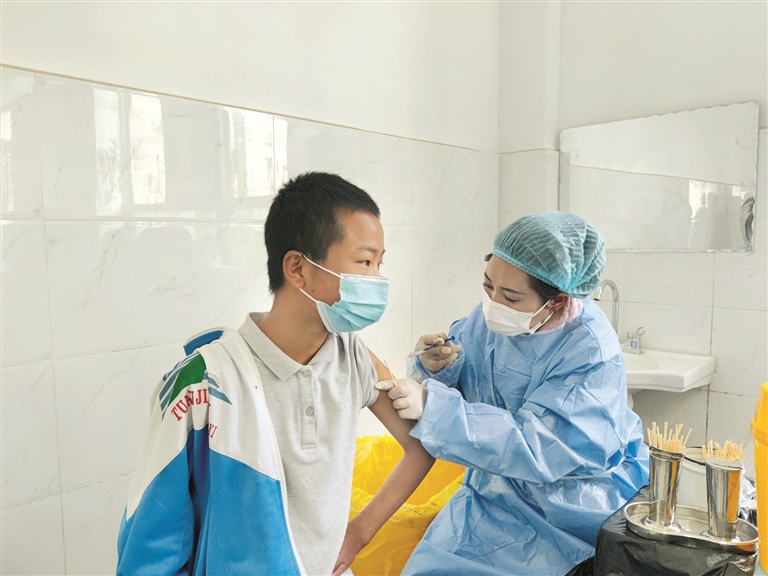 圖為拉薩市第八中學學生正在接種疫苗。拉薩融媒記者 余洋洋攝