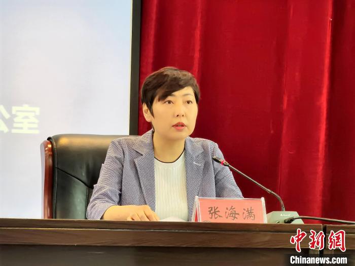 圖為青海省人民政府國有資產(chǎn)監(jiān)督管理委員會(huì)副主任張海滿介紹人才支持政策等情況?!∑钤鲚?攝
