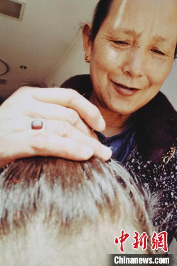 媽媽為白瑪卓嘎扎頭發(fā)。 白瑪卓嘎供圖