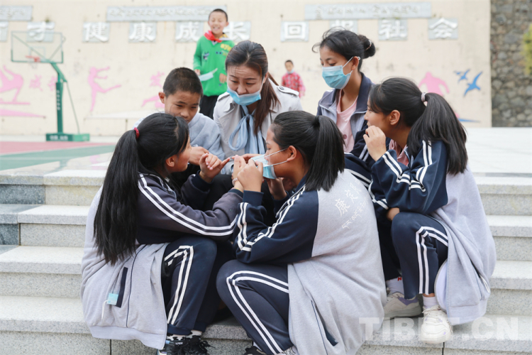 圖為甘孜州兒童福利院內(nèi)師生圍坐在一起 攝影:楊月云