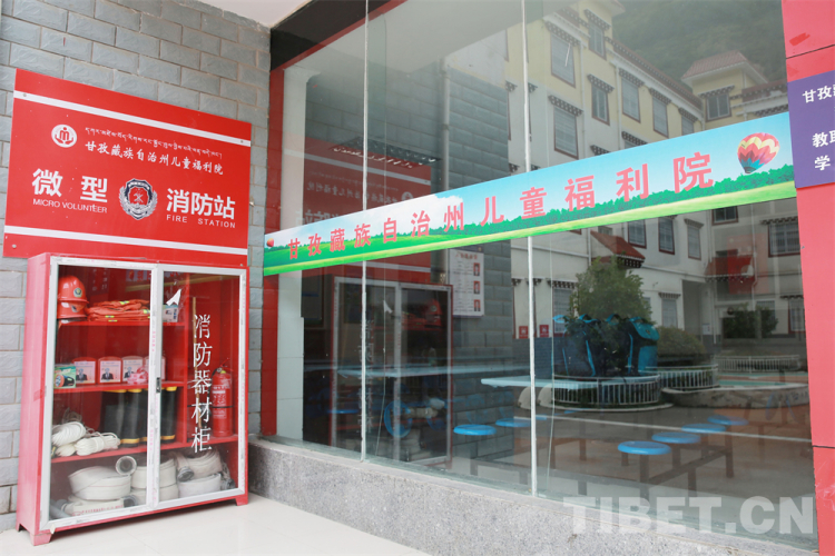圖為甘孜藏族自治州兒童福利院食堂外的微型消防站 攝影:楊月云