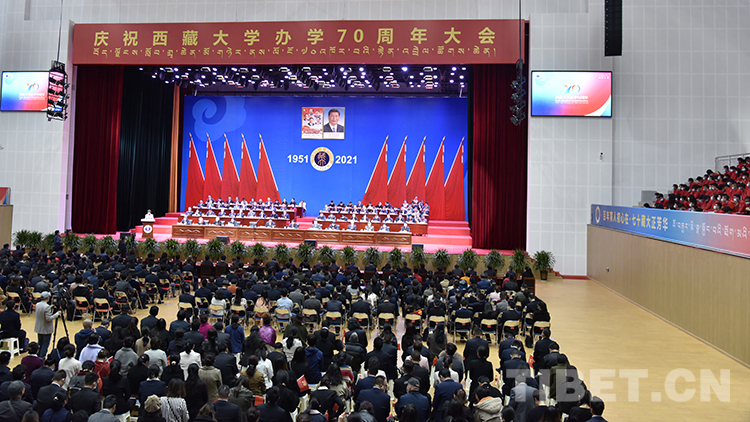 圖為慶祝西藏大學(xué)辦學(xué)70周年大會現(xiàn)場 攝影:王媛媛