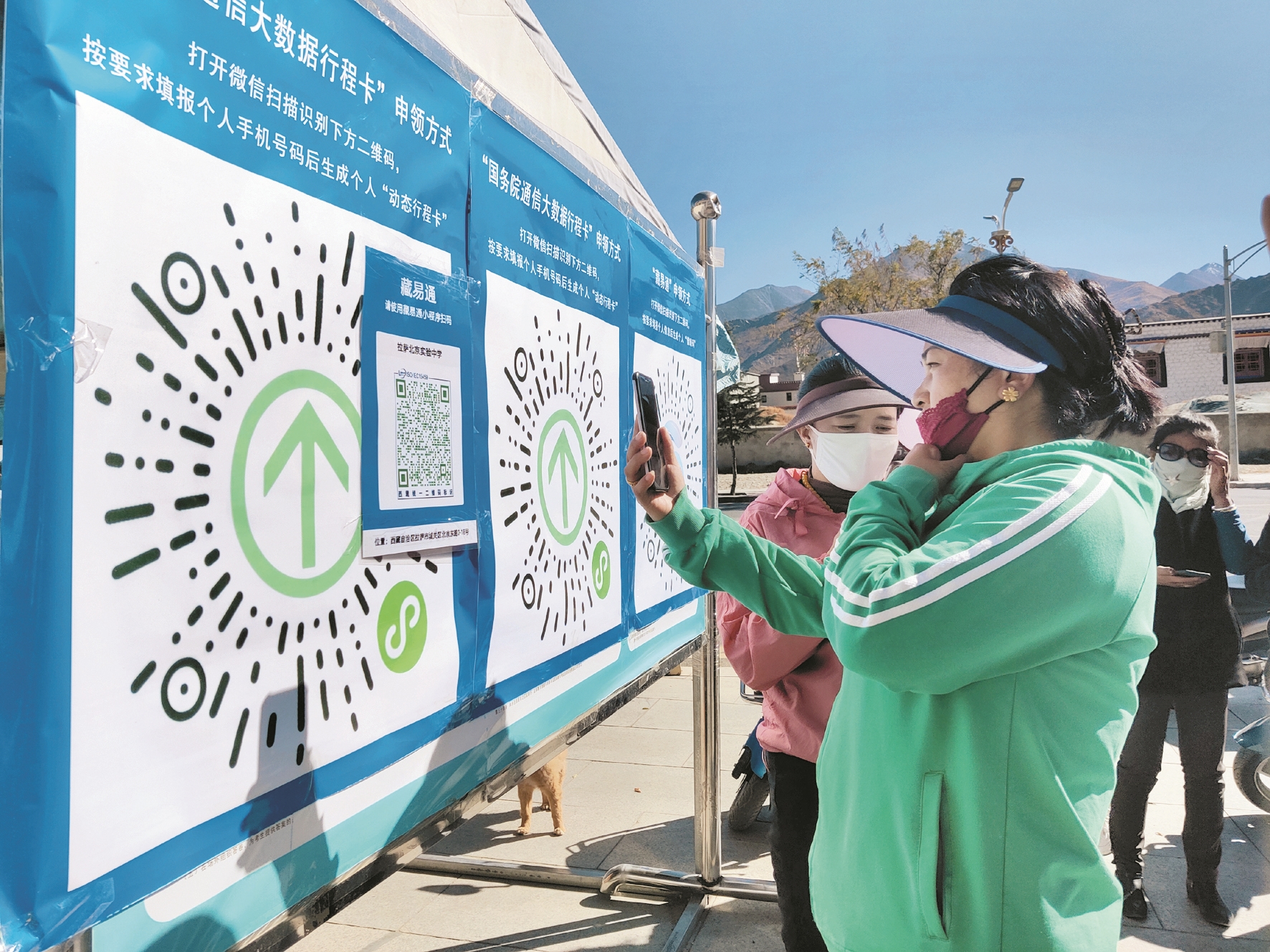 圖為進(jìn)入校園的人員正在掃描“場所碼”。 拉薩融媒記者 余洋洋攝