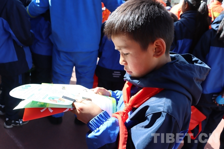 該小學(xué)相關(guān)負(fù)責(zé)人表示,通過森林火災(zāi)安全宣傳教育活動(dòng),進(jìn)一步提升了全校師生的森林防火意識(shí),提高了大家保護(hù)生態(tài)的安全意識(shí)。圖為小學(xué)生閱讀消防員發(fā)放的宣傳冊 (中國西藏網(wǎng) 通訊員/張林)