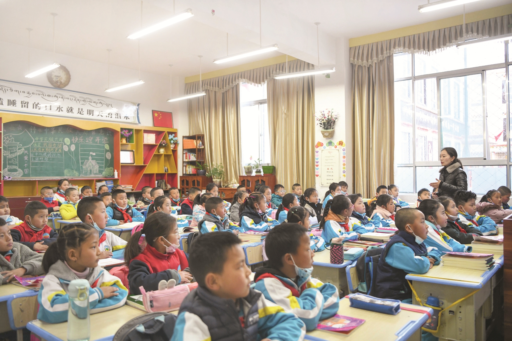 圖為開學(xué)第一天,城關(guān)區(qū)第二小學(xué)的同學(xué)們個(gè)個(gè)精神飽滿地聆聽開學(xué)第一課。拉薩融媒記者 平措旺堆攝