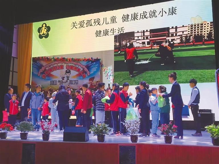 圖為在全國助殘日,全校師生開展“關(guān)愛孤殘兒童,健康成就小康”活動(dòng)。