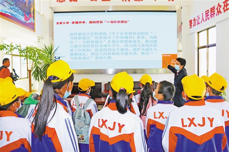 自2016年法治進(jìn)校園活動(dòng)開展以來,索朗旺久以高度的擔(dān)當(dāng)意識,積極克服公訴、未檢人手不足的困難局面,先后擔(dān)任朗鎮(zhèn)小學(xué)法治副校長、朗縣中學(xué)法治輔導(dǎo)檢察官,及時(shí)制訂《開展“法治進(jìn)校園”全縣巡講活動(dòng)實(shí)施方案》,定期深入全縣8所中小學(xué)及幼兒園開展法治宣講活動(dòng)。