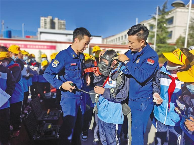 圖為拉薩市堆龍德慶區(qū)姜昆黃小勇希望小學少先隊開展“走進消防救援隊 零距離體驗消防”活動。記者 張宇 通訊員 蘭佳琪 攝