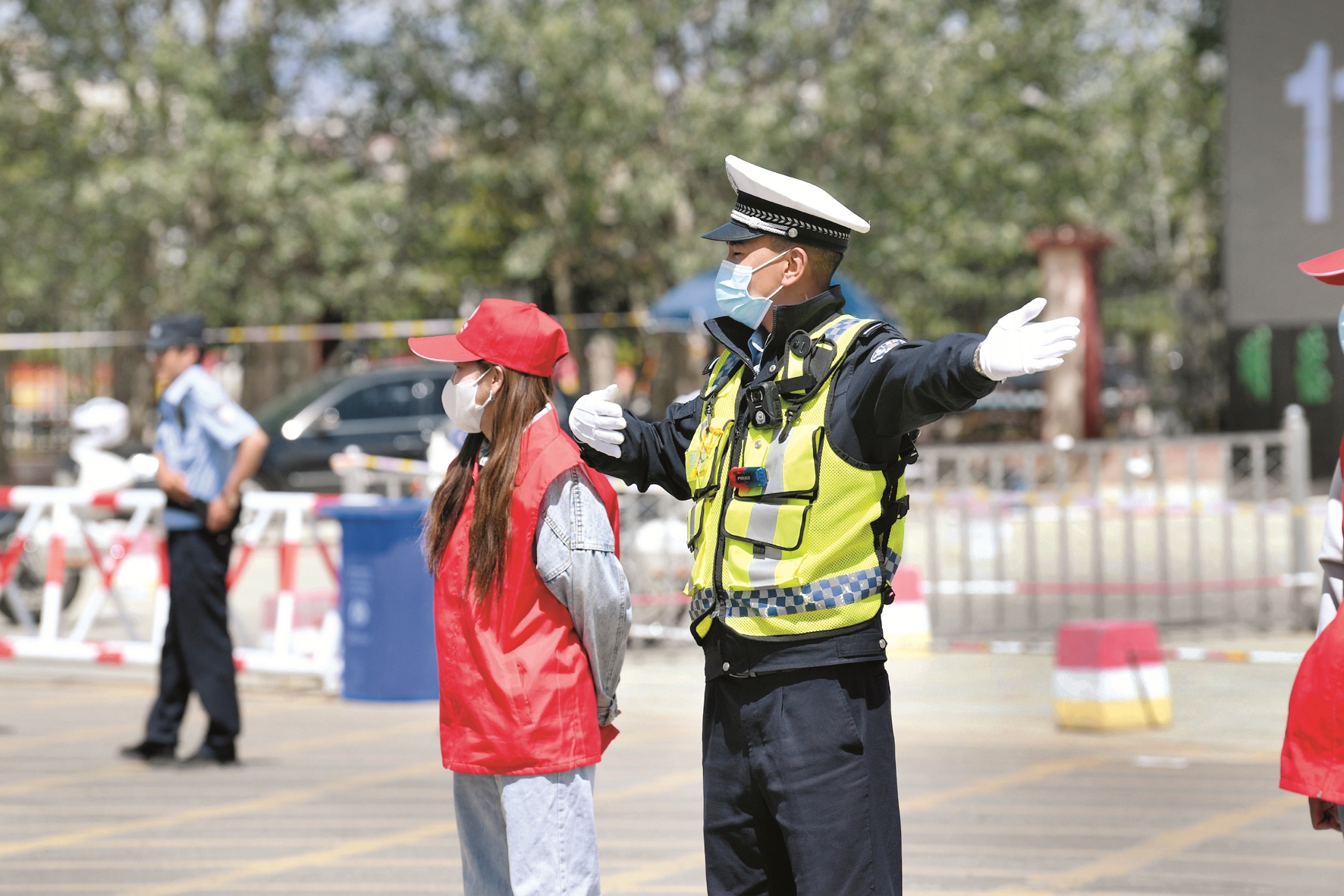 圖為拉薩交警在考點附近道路指揮交通。拉薩融媒記者 巴桑次仁攝