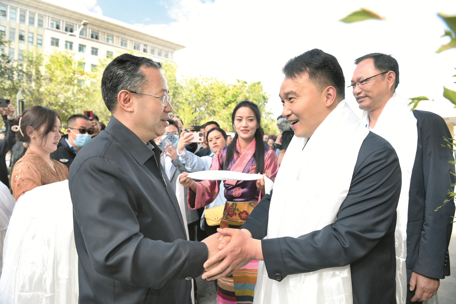 區(qū)黨委常委、市委書記普布頓珠,以及果果、陳靜、尼瑪、李忠海、普衛(wèi)東、張定成、王慧、張春陽(yáng)等拉薩市黨政軍領(lǐng)導(dǎo)和市(直)各單位、各縣(區(qū))干部職工自發(fā)來(lái)到援藏干部人才駐地、機(jī)場(chǎng),為即將離藏的江蘇省援藏干部人才送行,向大家獻(xiàn)上潔白的哈達(dá),祝福他們一路順風(fēng)、身體健康、工作順利、扎西德勒。